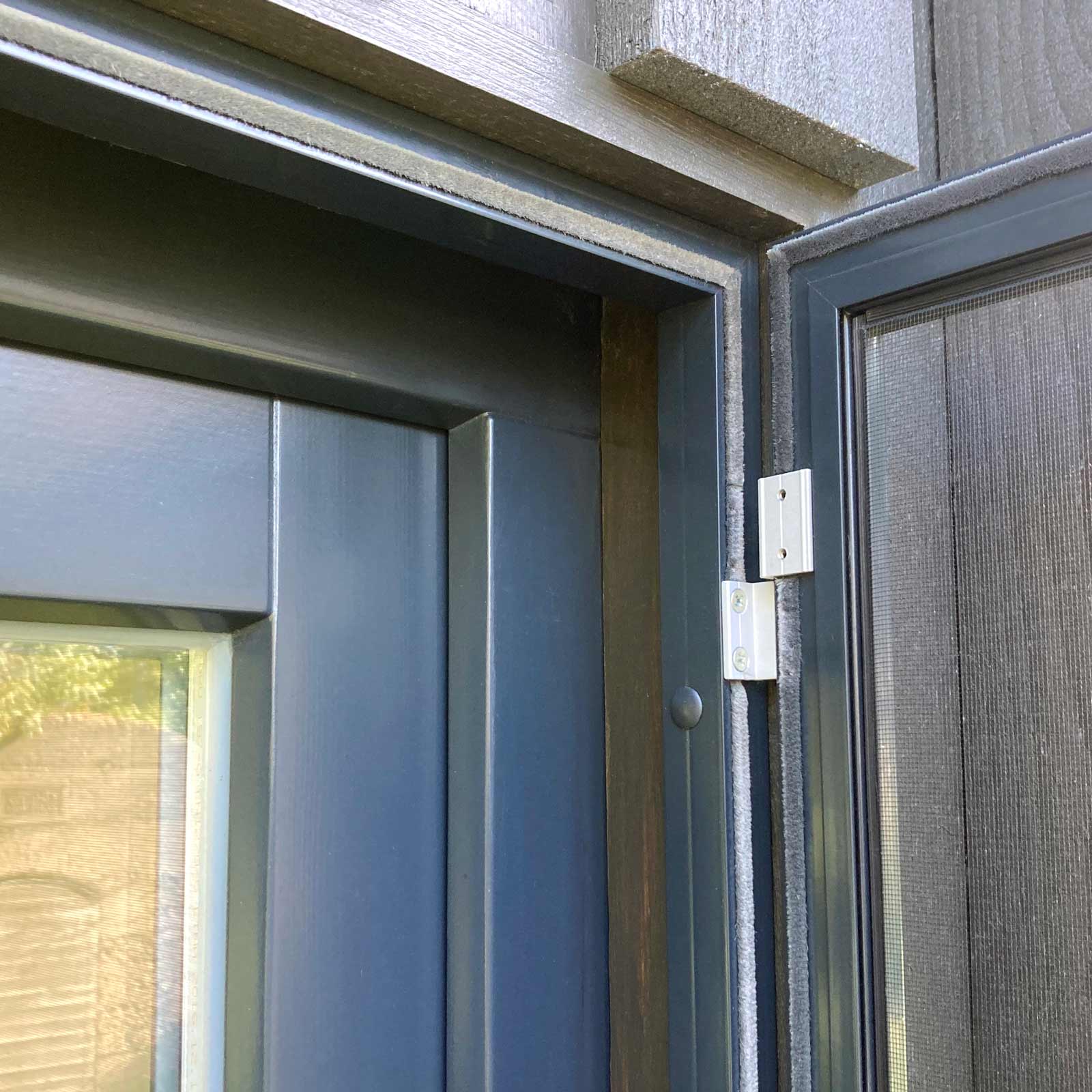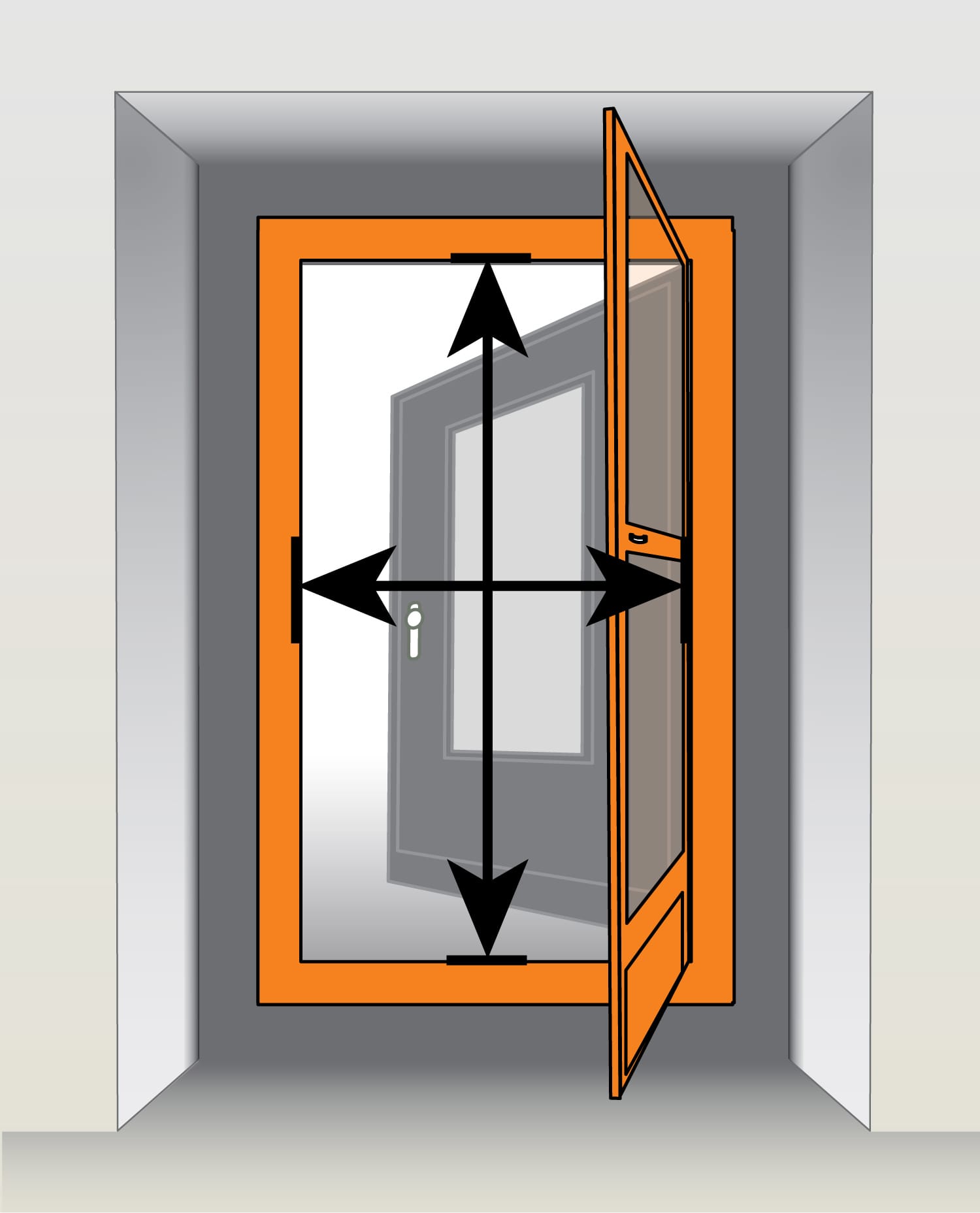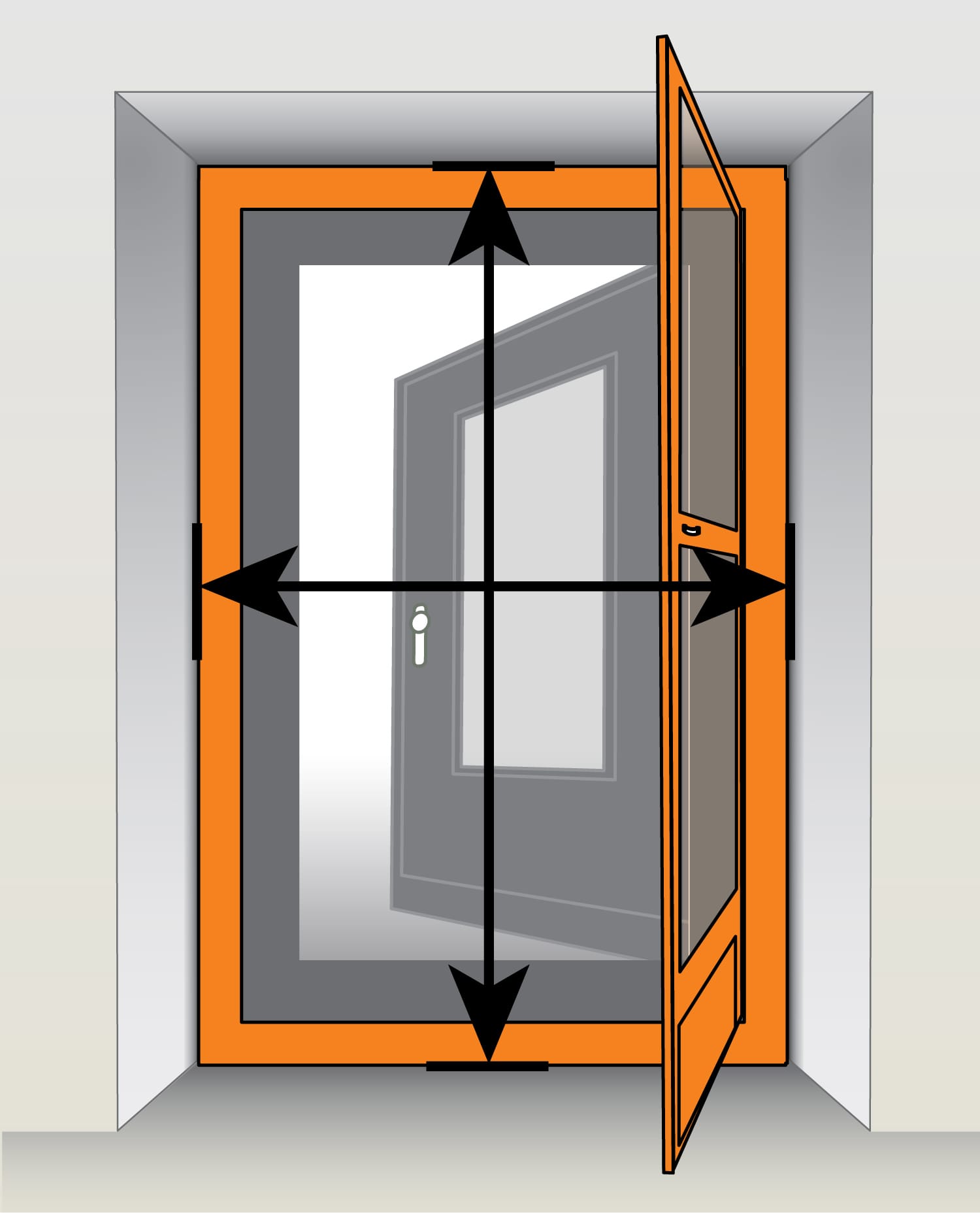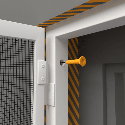 Place the insect screen on the outside of the door frame, with the green sticker at the top. Mark the places where the holes for the screws are to be drilled.